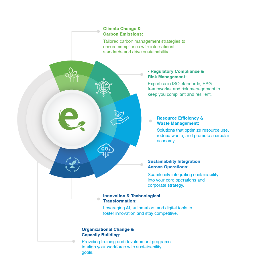 Organizations face a myriad of complex challenges—from carbon management to disruptive processes optimizations, climate change to regulatory pressures, resource scarcity, and the need for innovation. At Enerson, we turn these challenges into opportunities for growth. Our strategic approach ensures you navigate these obstacles with precision, helping you craft sustainable strategies that address immediate concerns and long-term goals.